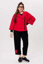 Костюм женский, состоящий из джемпера и юбки. Джемпер полуприлегающего силуэта из мягкого трикотажного полотна с добавлением ангоры со втачными немного спущенными рукавами и декоративной молнией по переду, вырез горловины округлой формы. Юбка полуприлегающего силуэта из эко - кожи, на подкладке с антистатическим эффектом, по переду функциональные карманы, по низу юбки разрез, пояс притачной, в боковые швы которого вставлена резинка для лучшего прилегания, застежка на молнию, петлю и пуговицу. Рекомендована стирка при t не выше 30 С, глажение при t прессующей поверхности не выше 110 С.