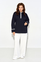 Стильный женский спортивный костюм свободного силуэта, состоящий из худи и брюк, выполнен из футера 3-х нитки класса пенье. Худи с капюшоном, функциональной молнией по переду и декоративными разрезами по боковым швам; рукава втачные со спущенной линией плеча. По низу манжет, капюшона и линии втачивания молнии вставлена тесьма белого цвета. Брюки свободного силуэта с притачным поясом полностью на резинке (резинка закреплена и не будет перекручиваться) и функциональными карманами в боковых швах. Костюм полностью соответвует заявленному размеру. Пожалуйста, пользуйтесь таблицей обмеров готового изделия. Контрастные ткани устойчивы к перекрашиванию благодаря современным технологиям, что предотвращает смешивание красок, сохраняя цвета ткани даже при совместной стирке.
