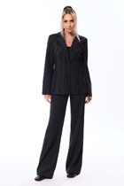 Костюм женский нарядный, выполнен из легкой натуральной ткани. Состоит из блузки свободного силуэта и юбки А-силуэта. Горловина блузки округлой формы. По переду и спинке рельефы которые оформлены воланами переходящими в рукава крылышки. На спинке вырез-капля. Низ блузки на резинке. Юбка с запахом дополнена воланом. Пояс притачной на резинке. Юбка на подкладке.