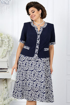 Комплект брючный 3х — предметный, состоит из жилета, блузки и брюк. Жилет свободного силуэта из ажурного трикотажного полотна с декоративными деталями из хлопчатобумажной ткани. По центру переда планка- складка, низ жилета фигурный, обработан широкой планкой. Спинка цельнокроеная. Горловина и проймы обработаны планками из отделочной ткани. Блузка свободного силуэта выполнена из х/б ткани. Воротник рубашечного типа, застежка центральная на петли и пуговицы. Рукава спущенные на манжете с застежкой на две пуговицы и петли. Брюки классической посадки из костюмной ткани, слегка заужены к низу. Пояс притачной частично со вставками с эластичной тесьмы. Застежка на молнию и петлю с пуговицей. В передних деталях обработаны карманы с подрезным бочком.