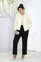 Классический льняной комплект состоящий из жакета и брюк. Жакет выполнен из льняной ткани на хлопковой подкладке, что позволит вашей коже дышать в летний период. Жакет прямого кроя, с подплечиками. Застежка центральная на 1 пуговицу. По переду расположены карманы с клапанами. Рукав двухшовный, что делает его очень удобным в носке, по низу рукава расположена шлица. По спинке расположена модная высокая шлица длиной 29 см. Длина жакета - 69 см. Брюки со складками на узком поясе, подходят всем без исключения, они удобно сидят и скрывают объем в бедрах.Модель наделена важной особенностью – высокой линией талии, что визуально удлинит ваши ноги. Застежка по переду на брючную молнию и пуговицу. В брюках имеются карманы с наклонным входом. Длина изделия 94 см.