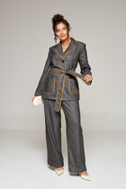 Костюм состоит из майки и шорт. Майка декорирована кокетками на плечах и треугольными вставками в боковых швах полочки. Шорты с прорезными карманами