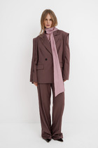 Летний брючный костюм в стиле сафари из костюмной ткани лен-вишер. Жакет рубашечного кроя, свободного силуэта с кокеткой, можно носить по пояс( входит в комплект, длина 180см)так и без пояса. Спереди на полочках имеются 4 накладных кармана с клапанами, которые застегиваюся на петли-пуговицы. Воротник отложной, рукав втачной с манжетом. Спинка жакета со средним швом. В боковых швах разрезы. Детали жакета имеют двойную отстрочку. Брюки прямые, свободного кроя, средней посадки, пояс по спинке и частично спереди на резинке, спереди на брюках иммитация застежки на молнию. Карманы настрочные прямоугольной формы со скосами к боковым швам.