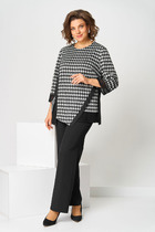 Юбка прямого силуэта с притачным поясом, в который вставлена эластичная тесьма. Заднее полотнище юбки со средним швом, внизу шва обработан разрез. Джемпер: длина рукава - 22см, ширина рукава – 19,5см, длина спинки – 55,5см.