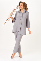 Жакет полуприлегающего силуэта с центральной застежкой на 4 петли и 4 пуговицы. Вырез горловины жакета фигурной формы. Детали переда жакета с отрезными бочками и вертикальными нагрудными вытачками. Карманы горизонтальные прорезные с листочками с втачными концами. Деталь спинки жакета со средним швом, отрезными бочками и рельефными швами. Рукава втачные двухшовные, по локтевым швам вставлена планка, по низу декоративно прикреплены по 4 пуговицы. Жакет с притачной понизу подкладкой. Съемный пояс в комплекте.