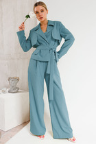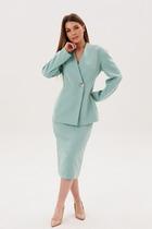 Блуза рубашечного покроя с втачным одношовным рукавом с манжетой. Спинка изделия состоит из горизонтальной кокетки и основной детали, на которой расположены две складки для свободы движения. Линия низа: фигурная. Рукав втачной, одношовный, с притачной манжетой, высотой 5,5 см и разрезом-планкой для петли/пуговицы. Высота планки- 11 см. Длина рукава в готовом виде 61 см. Горловина оформлена стойкой и рубашечным воротником. Застежка вертикальная на планках петли/пуговицы. Длина блузы по спинке 74-76 см (в зависимости от размерного ряда).