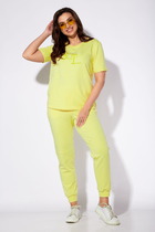 Комплект юбочный, состоящий из юбки и блузона из трикотажного полотна. Юбка прилегающего силуэта зауженная к низу, по среднему шву потайная застёжка-молния, в низу разрез. Верхний край юбка обработан обтачкой. Юбка на подкладке. Длина юбки по боковому шву 63 см. Блузон изготовлен из мягкого трикотажного полотна. Блузон прилегающего силуэта, слегка расклешён к низу, с нагрудными вытачками на полочке. Спинка со средним швом. В среднем шве спинки потайная застёжка- молния. Горловина обработана стойкой-воронкой, высотой 3,5 см. Рукав - реглан, слегка расклешён к низу. В комплекте идёт ремень.
