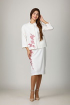 Брючный костюм двойка, состоящий из блузки и брюк из шелка.