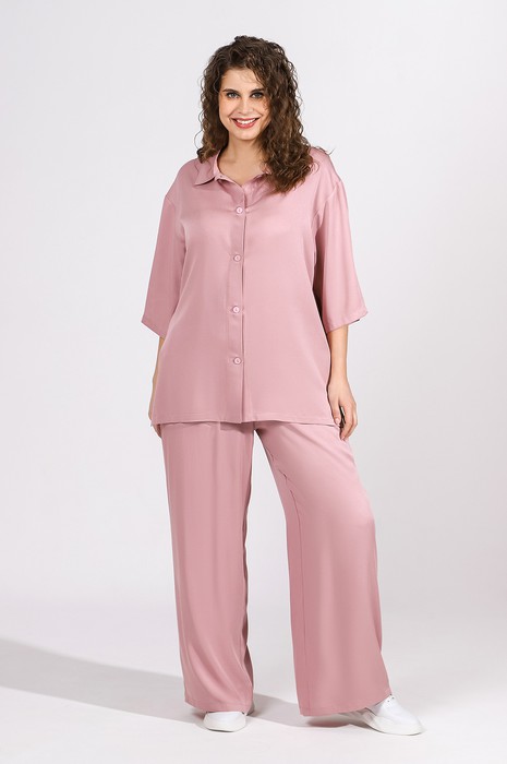 Костюм женский из гладкокрашеного тканого полотна «штапель» состоящий из блузы и брюк в единой цветовой гамме.