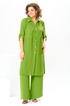 Костюм женский в стиле «спорт-шик» состоящий из джемпера и брюк. Джемпер прямого силуэта, со спущенной линией плеча. Низ рукавов джемпера на резинке. По низу спинки джемпера отрезная деталь с печатью. Горловина обработана капюшоном, состоящим из двух частей. В отлет капюшона вставлены блочки и декоративный шнур. Брюки зауженные к низу. На передних половинках брюк боковые карманы «хулиганы». Верхний срез брюк на притачном поясе на резинке с тесьмой из основной ткани.