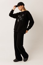 Блуза изготовлена из шифона. Перед блузы с запахом. Рукав втачной с запахом в верхней части, что обеспечивает свободу руке. Брюки зауженные к низу. Верхний край брюк на притачном поясе, по спинке от боковых швов на резинке. Застежка брюк спереди по типу «гульфик». По бокам карманы «хулиганы».