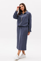 Жакет приталенного силуэта. Перед и спинка жакета с продольными рельефами. Шалевый воротник переходящий в декоративный элемент в виде банта. Центральная застёжка на петлю и пуговицу. Рукав втачной двух шовный. Юбка зауженная к низу, с застёжкой сзади на потайную молнию и на одну пуговицу в притачном поясе, с таллиевыми выточками и шлицей в среднем шве по спинке. Жакет и юбка на подкладке.