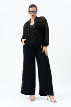 Жакет с округлым вырезом горловины, фигурным низом и центральной застёжкой на петли и пуговицы. Перед с декоративными деталями по низу и клапанами. Спинка со средним швом и талиевыми вытачками. Рукава втачные с отрезными деталями по низу. Жакет на подкладке.