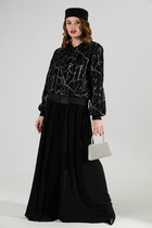Брюки на поясе. Передние половинки с наклонными карманами к боковым швам и с разрезами с застёжкой на потайную молнию по низу.