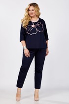 Дизайнерский брючный костюм с блузой. Современная интерпретация и новый взгляд на понятие классики, отличный выбор для поклонников минимализма. Жакет прямого силуэта с накладними карманами. Жакет с V-образным вырезом и воротником стойкой, застегивается на одну пуговицы. Перед оформлен вытачками из плечевого шва. Спинка с выточкой и средним швом. Рукава втачные с верхней и нижней частью с возможностью завернуть манжету. Блуза с нагрудными вытачками из бокового шва и коротким рукавом. Вырез горловины круглый с планкой.Прямые брюки прямого кроя с косыми карманами и отрезным поясом, по бокам на резинке. Застежка обработана по классической технологии (гульфик с молнией и пуговица на поясе). Вся обработка выполнена как в классических итальянских костюмах. Жакет на подкладке.