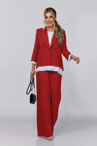 Комплект 2ка, состоящий из блузки и брюк. Элегантная блуза из легкой полупрозрачной ткани свободного силуэта. По переду блузки добавлен оригинальный элемент в виде складок, который служит декором, а также скрывает полупрозрачность блузы.