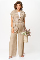 Брючный костюм – гардеробный сет, который всегда и всем внушает доверие, вызывает уважение и подразумевает значительное отношение к себе и к своей хозяйке. Комбинация «спорт + базовая классика» всегда выигрышна, потому что, кроме причастности к трендовому движению дарит владелице роскошь комфорта, тепла и уюта образа. Элегантный удлиненный жакет из полушерстяного полотна. Съемный пояс с отделкой декоративной тесьмой и металлической пряжкой. Жакет на подкладке, однобортный, с центральной застежкой на 3 петли-пуговицы. V-образный вырез удлинит силуэт и привлечет внимание к лицу. Рукава втачные двухшовные. Карманы накладные. Брюки свободного прилегания по бедрам и зауженные к низу. Пояс брюк на эластичной тесьме. Вход в карман фигурный, наклонный к боковому шву. Лампасы по боковым швам эффектно вытягивают силуэт. Длина 89 см по боковому шву, 65см по шаговому шву для 42 размера. Изделие подойдёт для роста 170 см.