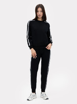 Комплект состоит из джемпера и брюк, выполнен из трикотажного полотна (футер). Джемпер свободного кроя. Рукав спущенный, по низу сборка и притачная манжета, по горловине планка, по переду косые рельефы и пришивная нашивка, ассиметричный низ. По спинке горизонтальный подрез и округлый низ. Брюки заужены к низу, на притачном поясе, резинка по задней части пояса, в боковых швах карманы.
