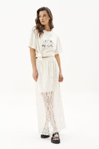 Брюки длинные, широкие, расклешенные книзу, с карманами в боковых швах. На уровне колена выполнен подрез. Пояс притачной, на резинке.