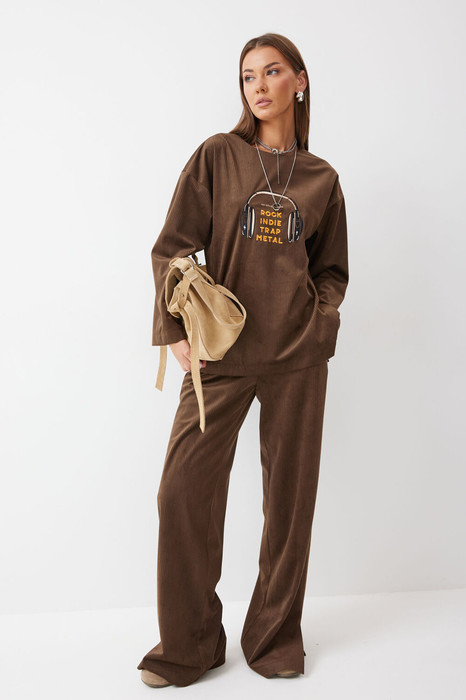 Джемпер прямого силуэта из костюмной ткани. Горловина округлая, на спинке застежка в среднем шве.  Рукав со спущенной линией плеча длинный. По  низу джемпера в боковом шве шлица.