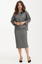 Стильный костюм из свитшота и брюк. Выполнен из футера без флиса. Свитшот свободного кроя со спущенным рукавом. Низ выполнен с асимметрией. Горловина округлой формы. На груди накладной карман с клапаном и декоративным элементом. Сбоку молния(имитация кармана) Брюки прямого свободного кроя, с притачным поясом, дополненным эластичной тесьмой. Посадка средняя. По бокам брюки дополнены удобными карманами. По низу брюк разрезы. Длина свитшота от плечевого шва 66см. Длина рукава 60см. Длина брюк по боковому шву 105см.