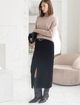 Стильный трикотажный костюм  из джемпера и юбки. Выполнен из качественного,  приятного к телу  трикотажного полотна. Джемпер прямого свободного кроя. Рукав втачной, слегка спущен, дополнен притачной манжетой. Горловина -стойка цельнокроеная. Перед  джемпера выполнен из коричневого трикотажа, спинка - из черного. Спереди джемпер дополнен притачной планкой с кулиской по низу. Юбка миди с боковым разрезом. По талии эластичная тесьма. Выполнена из черного трикотажа. Юбка дополнена из комфортной трикотажной подкладкой.  Длина джемпера от плечевого шва 63см. Длина рукава60см. Длина юбки85см.