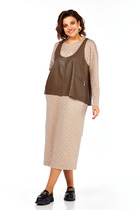 Комплект женский, состоящий из туники и юбки. Элегантный костюм не оставит Вас незамеченной и станет Вашей любимой одеждой не только на осенний период, но и в любое время года. Блузка трикотажная прямого силуэта со спущенной линией плеча. По плечевым швам декоративные вставки. Юбка слегка зауженная к низу, по переду декоративная вставка. Юбка на подкладке, по верху притачной пояс с резинками по бокам. Застежка в среднем шве заднего полотнища на потайную -молнию с петлей и пуговицей.