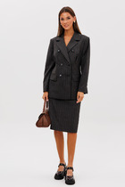 Комплект женский 2-х предметный состоящий из жакета и юбки выполненного из замшевой ткани. Жакет прямого с накладными карманами с клапаном. Спинка со средним швом. Рубашечный воротник. Спущена линия плеча. Рукав втачной одношовный по низу пата с 2-мя пуговицами. Застежка центральная на 5 пуговицы и петли. Жакет без подкладки.Юбка А-силуэта на обтачке. Застежка сзади на потайную тесьму-молнию. Юбка на подкладке.