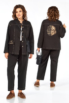 Комплект женский , двух предметный состоящий из туники и брюки. Туника прямого силуэта выполнена из трикотажного полотна « в полоску» . Горловина переда обработана обтачкой. Линия плеча спущена . По переду авторская термопечать. Рукав втачной, двухошовный, по переднему шву рукава сборка. По низу изделия и рукава приточная манжета. Длина изделия по спинке- 63 см, длина рукава от горловины – 64 см. Брюки прямого силуэта на притачном поясе, с застежкой на тесьму- молнию и 1 пуговицу и петлю, с боковыми наклонными карманами на передних половинках брюк . По передним и задним половинкам брюк заутюжен кант. Для лучшего прилегания брюк в области талии в поясе по бокам вставлена резинка. Длина брюк по боковому шву без пояса- 102 см.
