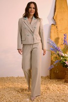 Костюм Magia mody 2623 серо-бежевый в бирюзовую полоску