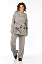 Юбка прямая, зауженная к низу, сверху на притачном поясе. Застежка на тесьму молнию в среднем шве, который переходит в шлицу. Костюм на подкладке.