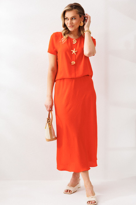 Юбка расширенная к низу. Верхний срез оформлен поясом с эластичной резинкой. Юбка без подкладки.