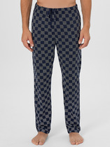 Костюм мужской из трикотажного полотна "кулирка" в комбинации двух видов: гладкокрашеного и набивного с тематическим рисунком, состоящий из футболки и брюк. Футболка из гладкокрашеного полотнас рукавами "реглан" длиной до локтя, горловиной овальной формы, обработанной втачной планкой и отделочной строчкой. В центре переда - принт, выполненгный в технике шелкографии. Брюки из полотна с набивным рисунком длинные, прямые, на притачном поясе с эластичной тесьмой внутри и карманами в боковыых швах.