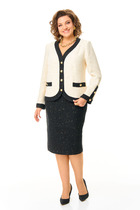 Обворожительный костюм-тройка: жакет, жилет и брюки. Жилет полуприлегающего силуэта, на подкладке. По переду рельефа карманы "листочки", застёжка на петли-пуговицы. По спинке вытачки и хлястик. Длина изделия 50 см. Жакет прямого силуэта. По переду нагрудная вытачка, переходящая в прорезной карман с клапаном. Двухбортная застёжка на петли-пуговицы. Рукав двухшовный, на логтевом шве отлетная шлица. Длина рукава 63 см. Длина изделия 77 см. Брюки полуприлегающего силуэта,зауженные к низу. По переду боковой карман, застежка на тесьму-молнию и пуговицу. Длина брюк 99 см.