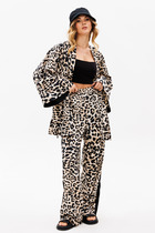 Костюм двухпредметный: состоит из рубашки - кропа и юбки. Укороченная рубашка из денима. Модель свободного кроя собрана на резинку по нижнему краю. Отложной воротник. Изделие застегивается на кнопки. Юбка - солнце длиной миди из облегчённого денима с узким поясом. В боковых швах расположены карманы. Застежка на кнопки с цельнокроеной планкой. Длина около 94 см. Изделие без подкладки.