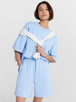 Костюм двухпредметный: состоит из жилета и брюк. Жилет удлиненный прямого силуэта, воротник пиджачного типа. По линии ткани настрочная кулиса с завязками. Застежка центрально-бортовая на петлю и пуговицу. Брюки свободного кроя сочетают элегантность и комфорт. Широкая резинка на поясе с завязками и наличие функциональных карманов подчеркивают удобство модели.