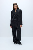 Комплект брючный 2-х предметный, состоящий из блузки и брюк. Блузка полуприлегающего силуэта, выполнена из вискозного полотна. Модель с плечевыми накладками и разрезами в боковых швах. Перед декорирован вставками с застроченными вертикальными защипами и отрезными фигурными планками, застегивающимися на 3 петли и 3 пуговицы. От планок к швам притачивания вставок направлены навесные петли, застегнутые на пуговицы. Спинка со средним швом; круглая горловина спинки обработана отрезной фигурной бейкой. Рукав короткий, втачной. Длина блузки – 66,5 (46-50 р-р) см, 69 см (52-60 р-р); длина рукава – 19,5 см (46-50 р-р), 20,0 (52-60 р-р) см. Брюки классические, с посадкой на талии, выполнены из вискозного полотна. Модель с центральной застёжкой на тесьму-«молнию», на притачном поясе, застегивающемся на петлю и пуговицу. Передние и задние половинки брюк с талиевыми вытачками, направленными от пояса вниз. Спереди обработаны боковые наклонные карманы. Для лучшего прилегания брюк в области талии в поясе по задним половинкам вставлена эластичная лента. Длина брюк по боковому (с поясом) – 101,5 см (46-50 р-р), 102,5 см (52-54 р-р), 103,5 см (56-60 р-р).