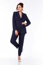 Брюки классические длинные, прямого силуэта, с посадкой на талии, выполнены из ткани «лен-вишер». Модель со стрелками, с центральной застёжкой на тесьму-«молнию», на притачном поясе, застегивающемся на петлю и пуговицу. Передние и задние половинки брюк с талиевыми вытачками, направленными от пояса вниз. Спереди обработаны боковые наклонные карманы. Для лучшего прилегания брюк в области талии в поясе по задним половинкам вставлена эластичная лента. Длина брюк по боковому (с поясом) - 107 см (50-52 р-р), 108 см (54-58 р-р).