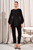 Этот наряд универсален: он уместен на праздничном приёме, корпоративе или ужине в ресторане, а также станет идеальным выбором для торжественных семейных событий. В нём комфортно, уверенно и красиво — именно так выглядит настоящая женственность в современном прочтении.