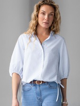 Укороченная блузка с рукавами буфами и с кулиской по низу из хлопка