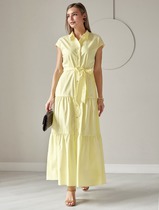 Платье А-силуэта с поясом из легкого хлопкового поплина