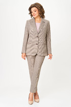Жакет с застежкой на планку со слегка смещенными пуговицами. Рукава съемные, пристегивающиеся с помощью пуговиц. Низ рукавов обработан манжетами на две пуговицы. На спинке – средний шов и горизонтальная кокетка. На переде – горизонтальная кокетка и накладные карманы. Низ изделия закругленной формы. Горловина оформлена стояче-отложным воротником с отрезной стойкой.