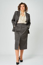 Комплект женский двухпредметный, состоит из жакета (на подкладке) и юбки, выполнен из экокожи.
