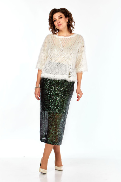— Костюм Olga Style Л413 молочный-зеленый