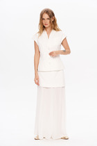 Женский вечерний комплект – это ваш идеальный нарядный образ для особых случаев. Этот стильный праздничный комплект, состоящий из накидки из органзы и изящного платья. Комплект станет ярким акцентом вашего гардероба и подарит уверенность в себе на любом торжественном мероприятии. Накидка свободного силуэта, со спущенным длинным рукавом. Горловина округлой формы, застежка на талии на завязку. По талии кулиска. Рукав по низу присобран тонкой кулиской. Его текстура и свободный силуэт делают этот образ модным и удобным. Платье, выполненное из плательной ткани, полуприлегающего силуэта мягко обрисовывает фигуру, делая образ завершенным и невероятно женственным. Платье с округлой горловиной, слегка спущенной линией плеча, нагрудные вытачки. Застежка на потайную молнию и разрез на спинке гарантируют удобство надевания и комфорт в движении. Позвольте себе быть неотразимой на любом празднике.