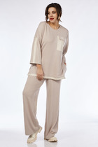 Прямые брюки с поясом на резинке из фактурного трикотажа в рубчик
