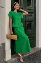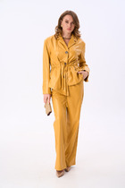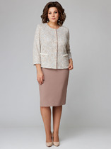 Комплект женский из трикотажного полотна для повседневной носки. Комплект состоит из брюк и джемпера. Джемпер свободный с длинным рукавом. Горловиа круглая. На передней и задней частях джемпера есть рельефные швы. Брюки прямые длинные на резинке, с боковыми карманами в боковых швах.