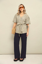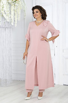 Текстильный костюм-двойка из свободного жакета со шлицами и прямых брюк-палаццо