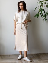Длина жакета по спинке около 66 см в размерах 40-46 и около 69 см в размерах 48-52, длина рукавов около 61 см. Длина брюк по боковому шву с поясом около 113 см в размерах 40-46 и около 114,5 см в размерах 48-52, длина по внутреннему шву около 82 см.