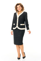 Длина жакета по спинке около 73 см в размерах 40-46 и около 75 см в размерах 48-52, длина рукава около 61 см. Длина брюк по боковому шву с поясом около 110,5/112 см